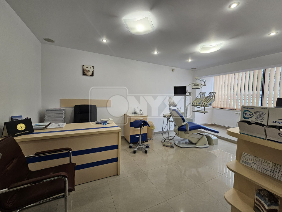 Se închiriază spatiu comercial compus din 3 camere si 2 grupuri sanitare, si camera de sterilizare .Spatiul se afla in zona Casa de Cultura la parterul unui bloc, fiind ideala activitatea de cabinete medicale.Accesul se face separat.Momentan in acest spatiu este cabinet stomatologic ,el fiind dotat complet pentru aceasta activitate.Se inchiriaza cu tot ce este in el.Pentru alte detalii si pentru a programa o vizionare nu ezitati sa ma contactati!